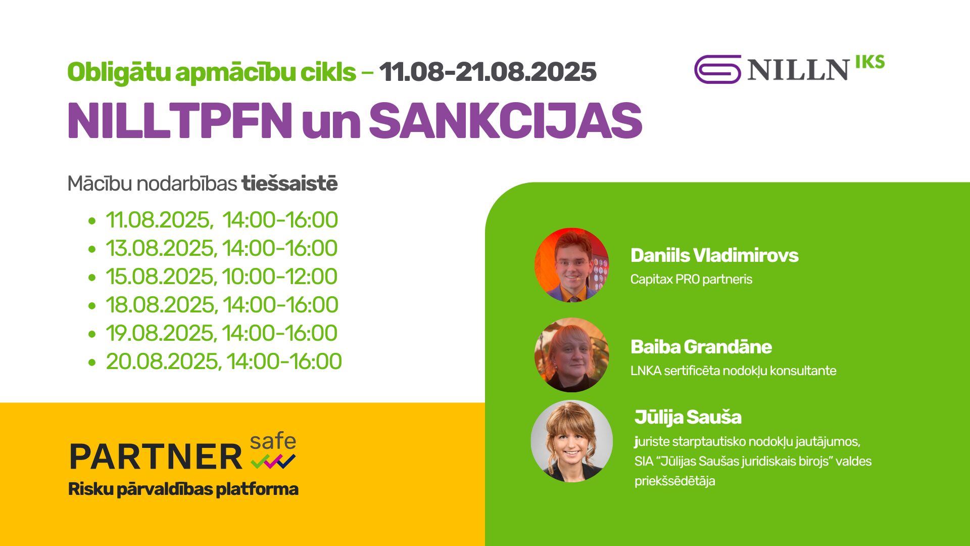 • Pārskatu par jaunākajiem NILLTPFN un sankciju likuma grozījumiem.